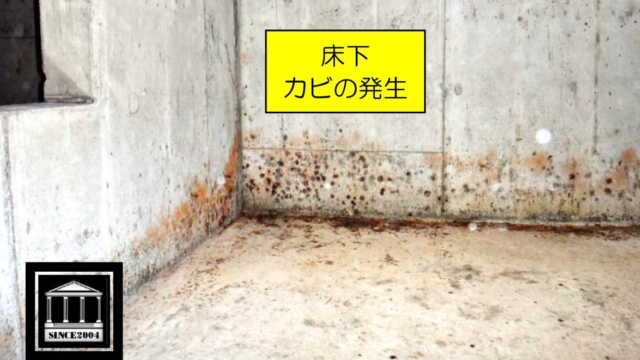 木造住宅床下浸水事例 床下の浸水事例写真です。 建物の床下地盤面が外周地盤面より低い場合、地盤水位と連動し床下浸水が生じる場合があります。 湿潤状態は腐朽菌の繁殖環境となり、木造耐久性に悪影響が生じるため、早期の是正が必要…Read More シックハウス床下漏水・浸水結露・カビ