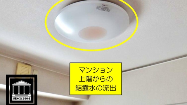 マンション上階からの漏水事例 上階の結露水が下階に漏水した事例写真です。 上階窓で発生した結露水が、床のコンクリートに滞留し、軽微なひび割れから下階に流出している状態です。 照明器具の漏電・破損・出火の危険性がある状態です。 上階…Read More シックハウス漏水・浸水結露・カビ