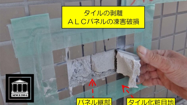 外壁ALCタイル仕上の欠陥 外壁ALCパネル下地へのタイル剥離事故の事例です。 原則、寒冷積雪地でのタイル仕上は、不適となります。 特にALC目地を跨いでタイルを施工している物件は、ALCパネルに凍害破損が生じるため、剥落事故が…Read More 漏水・浸水ALC