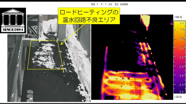 ロードヒーティング欠陥事例 温水循環式ロードヒーティングの施工不良事例です。 画像は、サーモカメラ(赤外線装置法)により、ロードヒーティング放熱状態を確認したデータです。 ヒーティング分割配管の一部に、流量不良が生じてい回路が存…Read More 外構欠陥