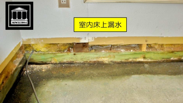 混構造(1階RC+木造)漏水事例 1階RC+2~3階木造建物の漏水事例です。 2階外壁土台と1階RCスラブ面との取合い部に防水欠損が存していたため、2階床下に漏水が生じています。 長期間の漏水により土台が腐朽しています。 外装面の防水…Read More 構造劣化漏水・浸水